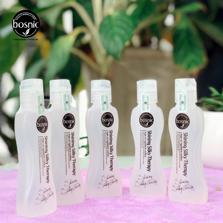 Tinh Dầu Siêu Mượt Bosnic - Shining Silky Therapy 60ml là lựa chọn hàng dầu trong sản phẩm dưỡng tóc. Với tinh chất từ quả Argan giúp cho tóc sau khi sử dụng sản phẩm luôn óng mượt, giảm gãy rụng,chẻ ngọn, khô xơ và vô số các vấn đề về tóc đều sẽ được giải quyết chỉ với 1 chai tinh dầu Silky. Đối với những khách hàng thường xuyên sử dụng các loại máy nhiệt để tạo kiểu tóc (uốn, duỗi,bấm tóc, v..v) hoặc đã từng sử dụng qua hóa chất làm tóc thì tóc sẽ dần mất đi độ cân bằng, suôn mượt và chắc khỏe vốn có, chính vì thế, việc sử dụng tinh dầu siêu mượt Shining Silky Therapy trước khi sử dụng hóa chất làm tóc sẽ giúp giảm thiểu hư tổn cho tóc, cân bằng lại độ ẩm và giúp tóc luôn chắc khỏe, bóng mượt.