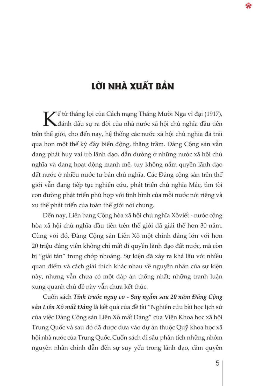 Tính Trước Nguy Cơ - Suy Ngẫm Sau 20 Năm Đảng Cộng Sản Liên Xô Mất Đảng Cuốn sách Tính Trước Nguy Cơ – Suy Ngẫm 20 Năm Đảng Cộng Sản Liên Xô Mất Đảng