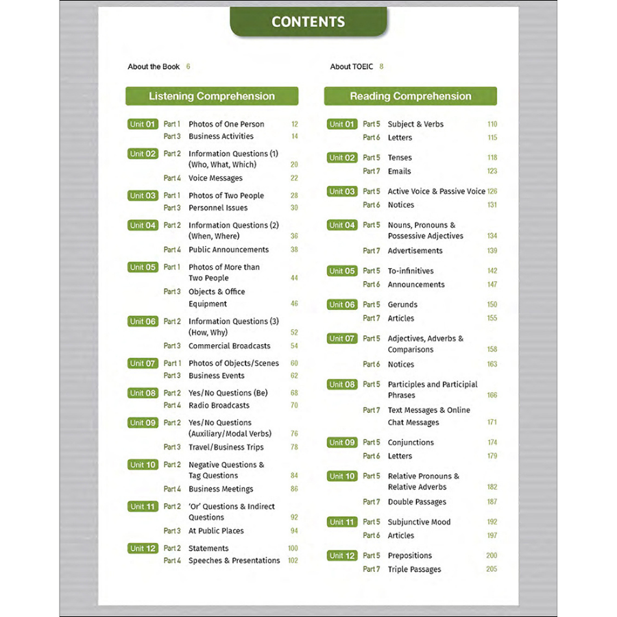 Chapter 01: Listening Comprehension - Part 1: Strategies - Part 2: Strategies - Part 3, 4: General Strategies - Part 3: Strategies - Part 4: Strategies Chapter 02: Reading Comprehension - Unit 01: Structural Understanding