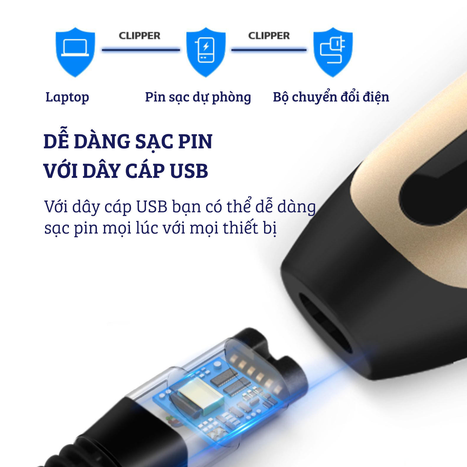 - Không sử dụng tông đơ trong quá trình sạc pin.