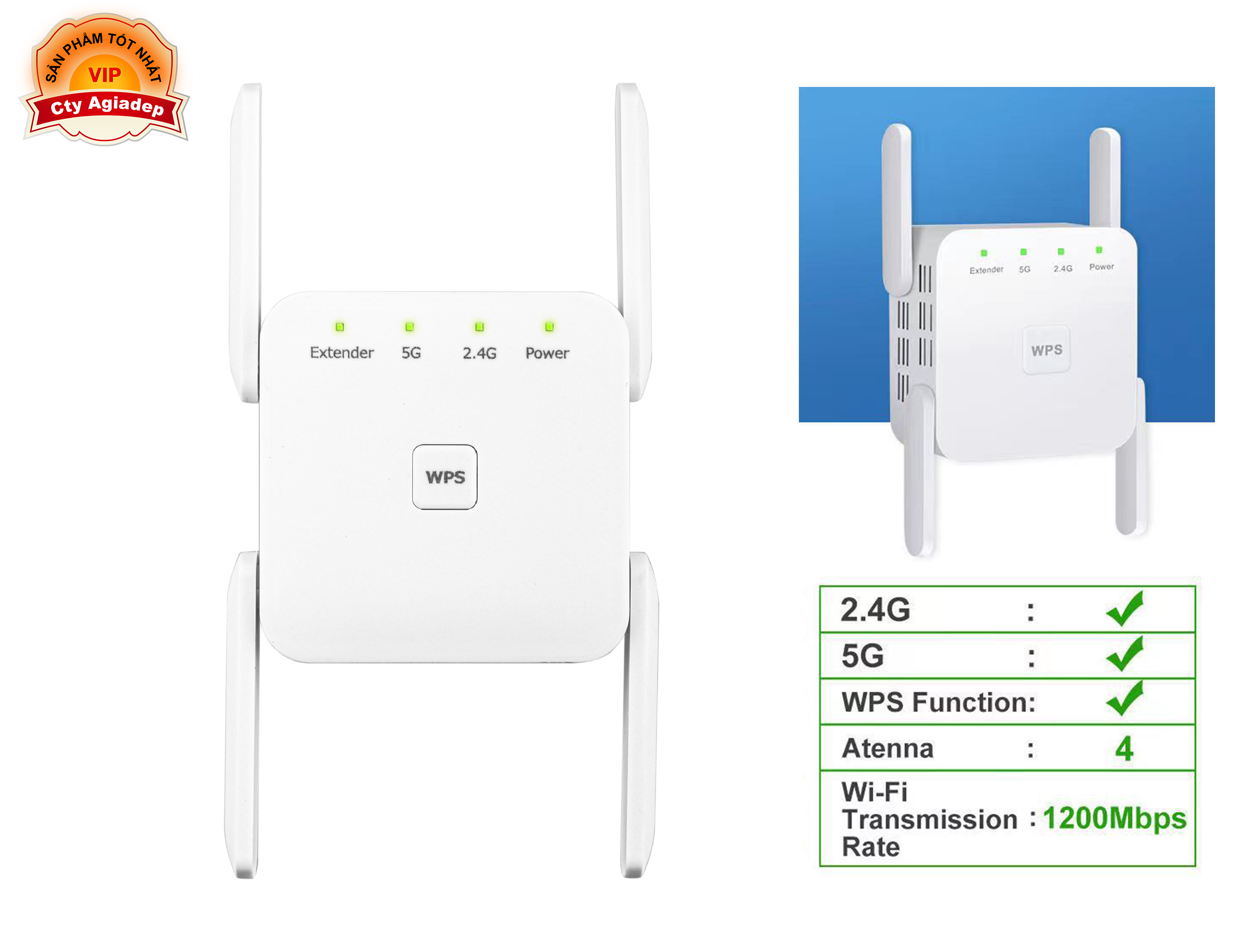Giới thiệu sản phẩm: - Siêu phẩm công nghệ thế hệ mới nhất trang bị 2 in 1 tính năng phát wifi + kích wifi. - 4 ăng ten 5DBi, phát sóng tối đa tới