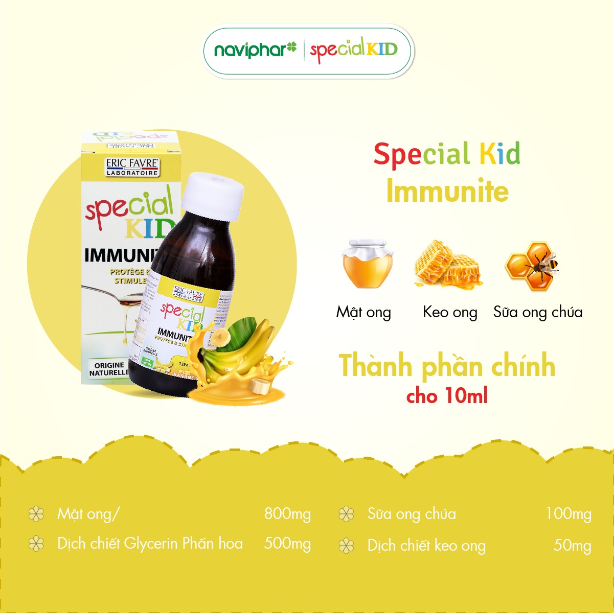 Siro hỗ trợ tăng sức đề kháng Hỗ trợ giảm nguy cơ mắc các bệnh do nhiễm khuẩn TPBVSK Special Kid Immunite / Special Kid Immunity 125ml [Nhập khẩu - Pháp] Special Kid là thương