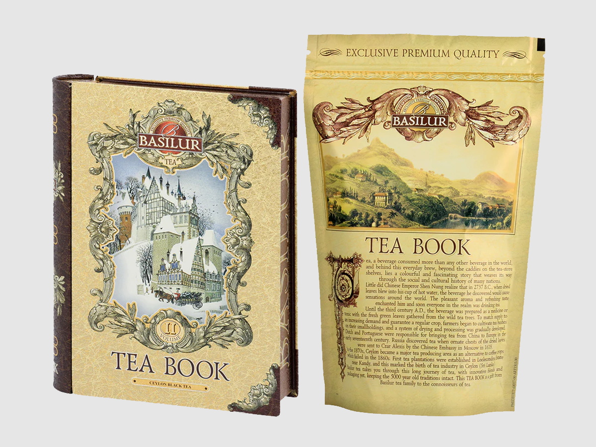 Basilur là một đại diện điển hình của nghệ thuật uống trà. Mỗi bộ sưu tập của Basilur mô tả một câu chuyện riêng liên quan đến di sản Sri Lanka phong phú. Mỗi sản phẩm là một trải nghiệm uống trà độc đáo đưa những người uống trà sành điệu đến những thời gian và địa điểm khác nhau. Trà Basilur sẽ đưa bạn đi qua cuộc hành trình dài của trà, với cách pha chế và đóng gói sáng tạo nhưng vẫn giữ nguyên vẹn truyền thống 5000 năm tuổi. Basilur Tea Book Collection là một món quà của gia đình trà Basilur dành cho những người sành trà.