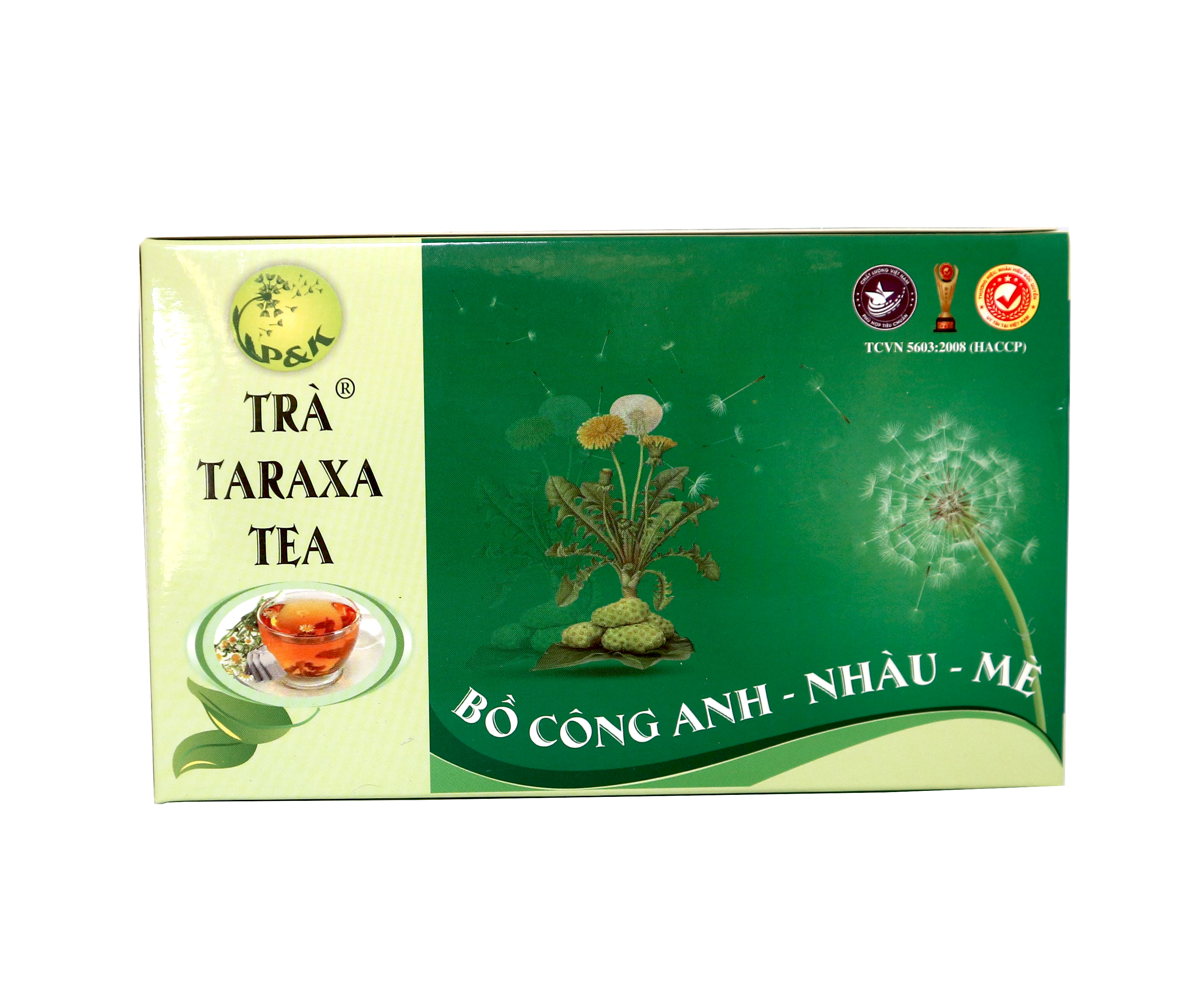Trà Taraxa Tea BỒ CÔNG ANH - NHÀU - MÈ P&K (50 túi lọc) Trà TARAXA TEA là sự kết hợp giữa cây thảo dược Bồ Công Anh, hạt mẻ đen (hạt vừng),