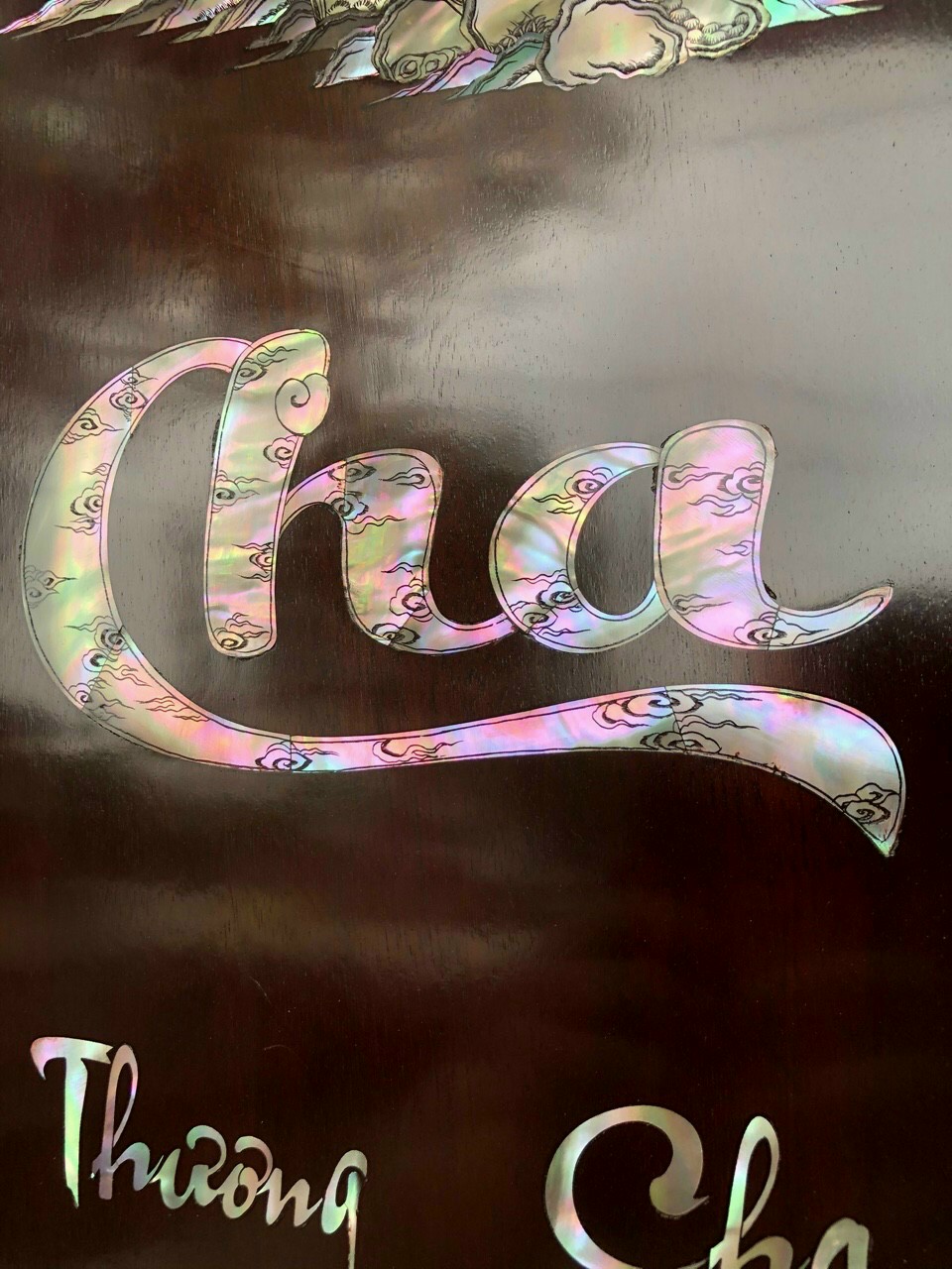 Tranh câu đối cha mẹ khảm ốc đỏ singapore giá 100tr Lh 0965608392