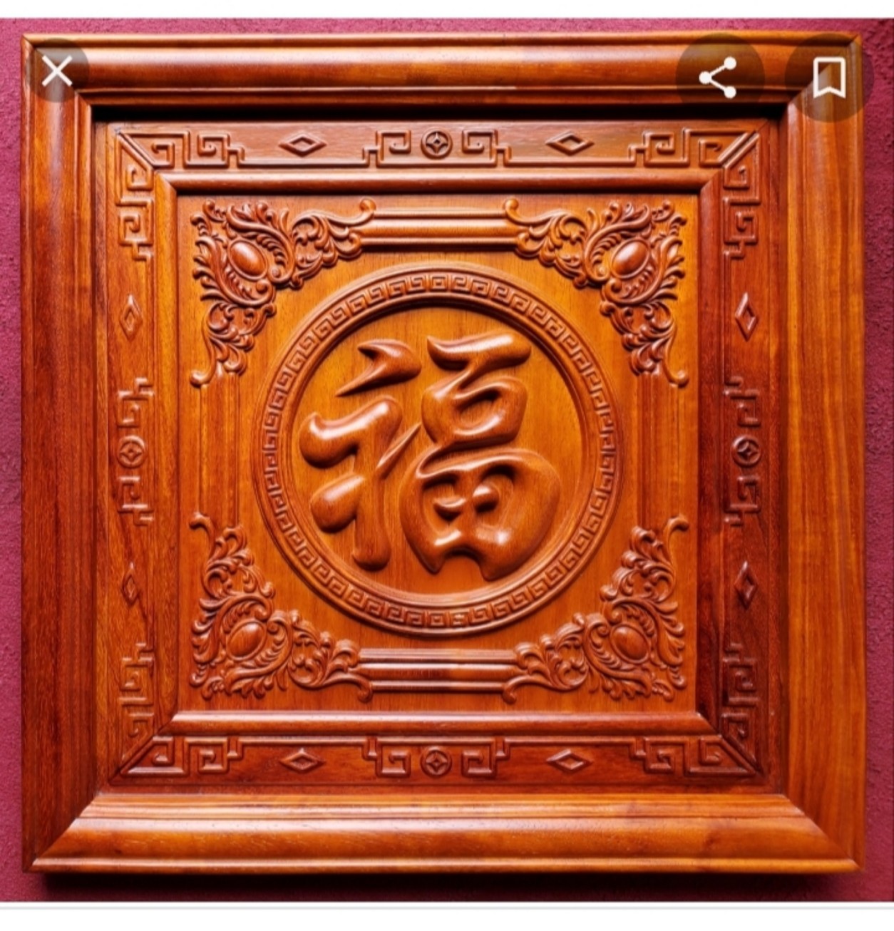_ Tranh điêu khắc chữ phúc được làm bằng chất liệu gỗ hương đỏ tự nhiên 100%_ Kt mặt rộng 67×67×3,5cm_ Tranh điêu khắc chữ phúc vô cùng tỉ mỉ ,tinh sảo kỳ công .Đi hầu hết tất tất cả mọi chi tiết gó...