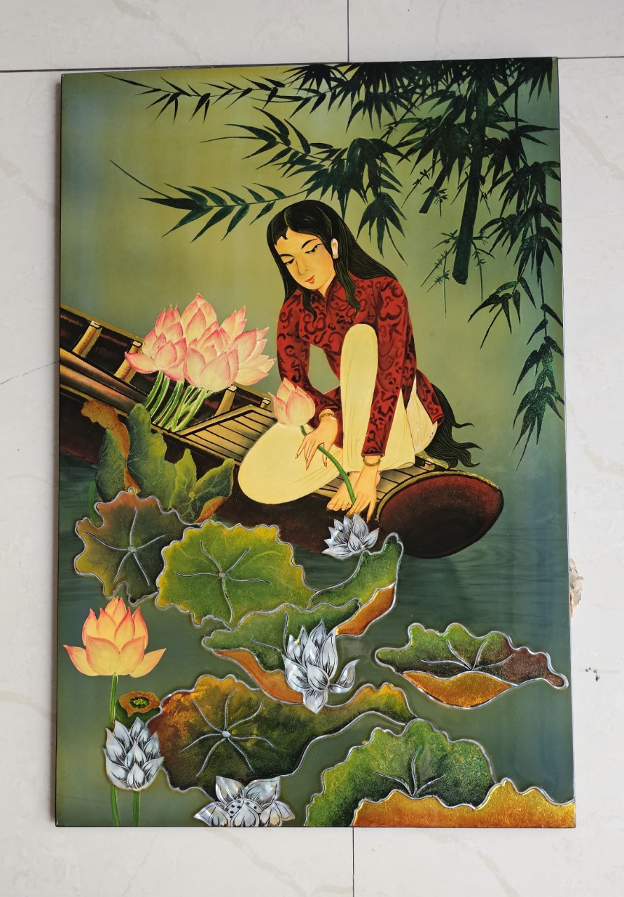 Kích thước 40x60cm Chất Liệu gỗ MDF phủ Melamin có độ bền cao Tranh sơn mài cẩn ốc là tranh nghệ thuật thủ công truyền thống của Việt Nam khác biệt hẳn so với các