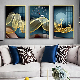Tranh đồng hồ hươu vàng tài lộc - Kích thước của tranh : 35x70cm - 45x90cm -55x110cm-60x120cm - Khác h hàng muốn thay đổi sản phẩm tùy ý như: kích thước, màu sắc kim đồng
