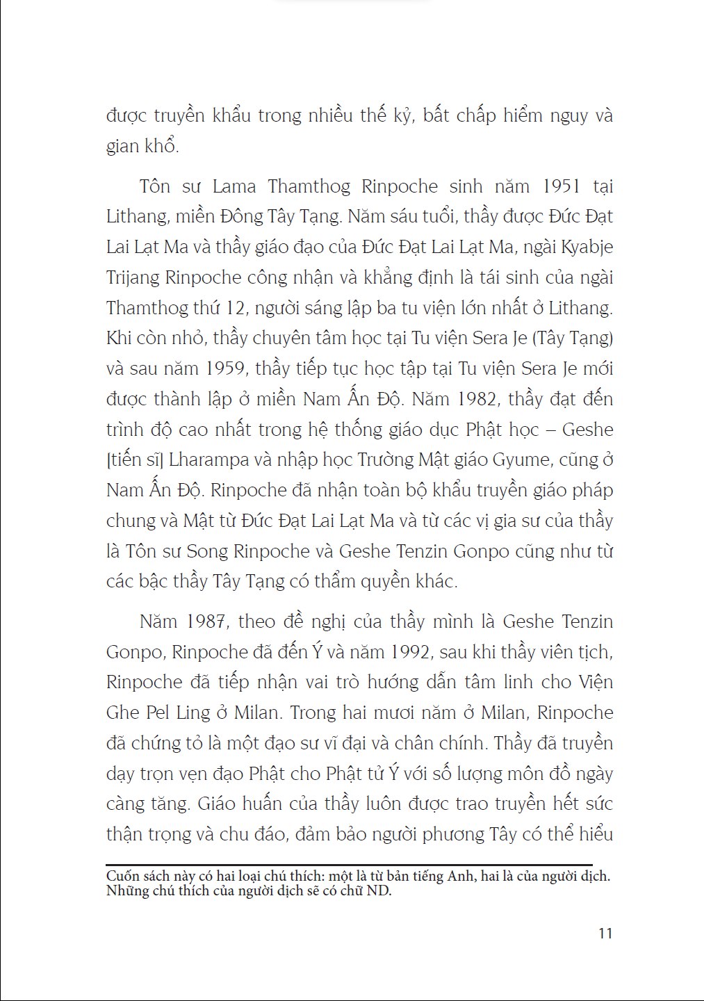Cuốn sách giới thiệu tập hợp các bài giảng của Tôn sư Lama Thamthog Rinpoche trong một số buổi thuyết Pháp và nhập thất tổ chức tại Viện Nghiên cứu Phật giáo Tây Tạng Ghe Pel Ling ở Milan, Ý. Cuốn sách này là kết quả từ các bài học bao gồm những chủ đề được dạy theo truyền thống trong tác phẩm Lam rim (Đèn soi nẻo giác), do học giả, hành giả người Ấn Độ Atisha viết ở Tây Tạng vào thế kỉ 11 và được Lama Tsong Khapa- một trong số nhiều đạo sư Tây Tạng – luận giải vào nửa sau thế kỉ 14. Lam rim bao gồm toàn bộ phần thuyết Pháp nguyên thuỷ của Đức Phật Thích Ca Mâu Ni, được tổ chức theo một trình tự nhằm dẫn dắt thiền giả từng bước tinh luyện tâm mình, vượt qua các cảm xúc phiền não và quan điểm sai lầm, đạt được thành tựu giác ngộ.