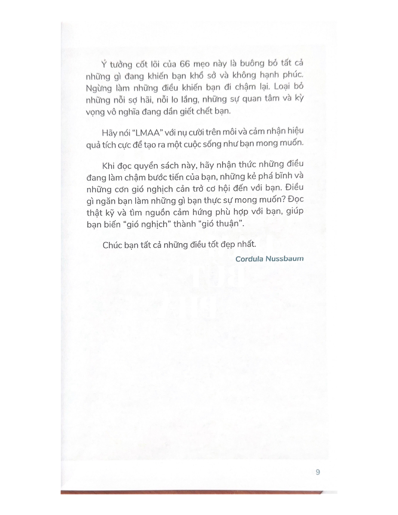 Để thoát khỏi vòng quay khổ sở này, ta phải học cách trở nên tốt đẹp hơn bằng cách thực hành Triết lý LMAA – “Cảm ơn, nhưng không phải hôm nay”. Hãy nói “LMAA” đối với những tham vọng thái quá khiến chúng ta mất động lực. Hãy nói “LMAA” đối với những đòi hỏi của người khác khiến ta phải sống một cuộc đời không đích thực. Hãy nói “LMAA” đối với những người đang ra sức dạy bảo ta “phải” sống như thế nào. Hãy nói “LMAA” đối với sự thôi thúc khiến ta luôn phải cố gắng sống tốt hơn và nhanh hơn. Hãy nói “LMAA” đối với cảm giác trách nhiệm và bổn phận đang đè nặng lên ta hằng ngày