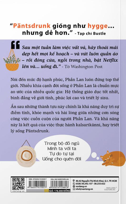 Mua tại TiktokTriết Lý Sống Pantsdrunk - Chill Như Người Phần Lan Sau một tuần làm việc vất vả, hãy thoải mái dẹp hết mọi kế hoạch – và vứt luôn quần áo – rồi đóng cửa, ngồi trong nhà, bật Netflix lên và… uống đi.” - Tờ Washington Post Nói đến mức độ hạnh phúc, Phần Lan luôn đứng top thế giới. Nhiều khía cạnh đời sống ở Phần Lan là chuẩn mực ao ước của nhiều quốc gia: Hệ thống giáo dục tốt nhất, bình đẳng về giới tính, phúc lợi cao và triết lý sisu. Ẩn sau những thành tựu này chính là khả năng duy trì sự điềm tĩnh, khỏe mạnh và hài lòng giữa những cơn sóng công việc cuồn cuộn của người Phần Lan. Và khả năng này là kết quả của việc thực hành kalsarikänni, hay triết lý sống Päntsdrunk. Trong bộ đồ ngủ Mình ta với ta Tự do tự tại Uống cho quên đời