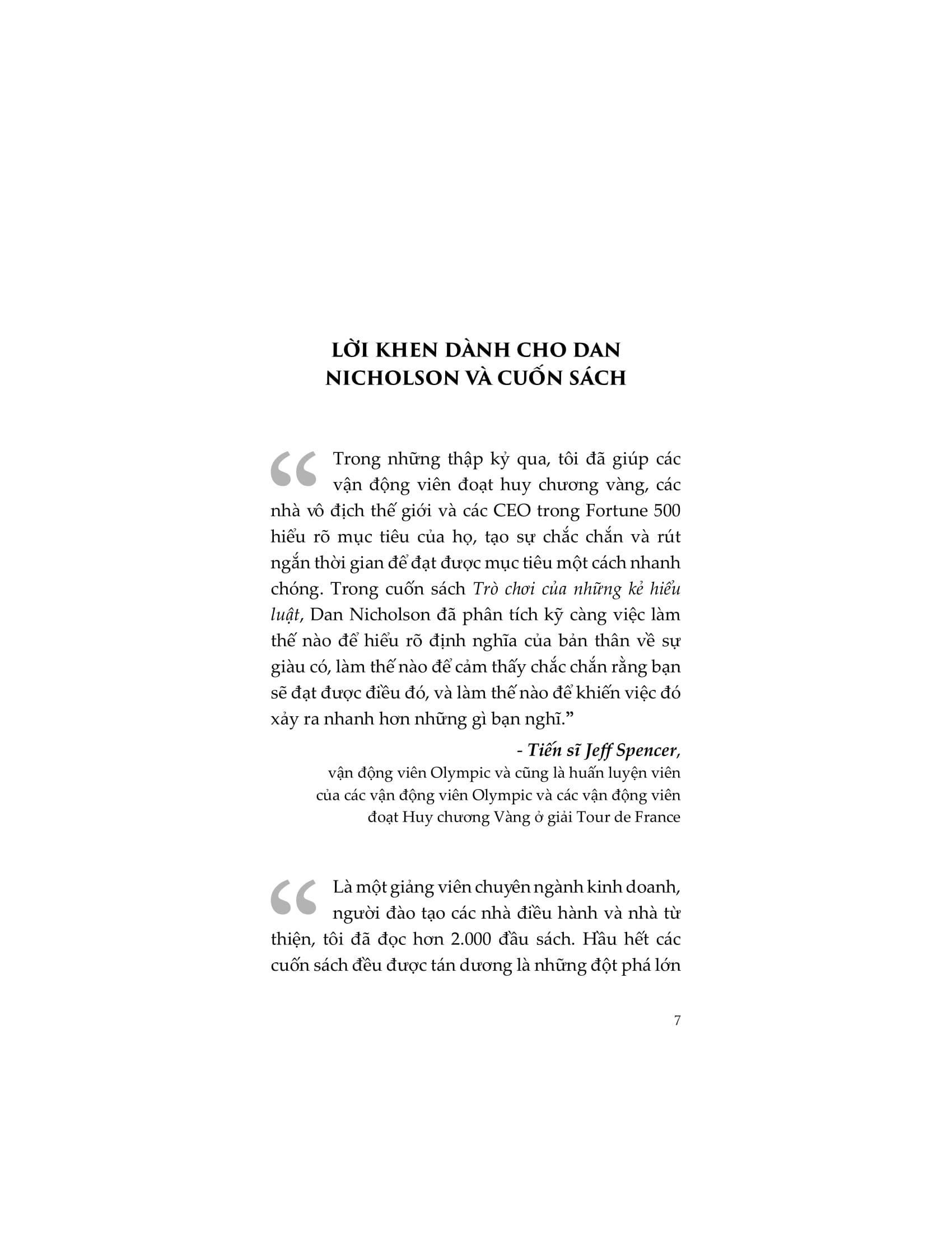 Đây không chỉ đơn thuần là một hướng dẫn về kinh doanh mà cuốn sách còn là một cuộc cách mạng tư duy về tài chính. Với những nguyên tắc sắc bén và các chiến lược thực tế, “Trò chơi của những kẻ hiểu luật” sẽ giúp bạn hiểu rõ hơn về cách biến luật chơi thành lợi thế, tạo ra giá trị và đạt được thành công trong mọi lĩnh vực của cuộc sống.