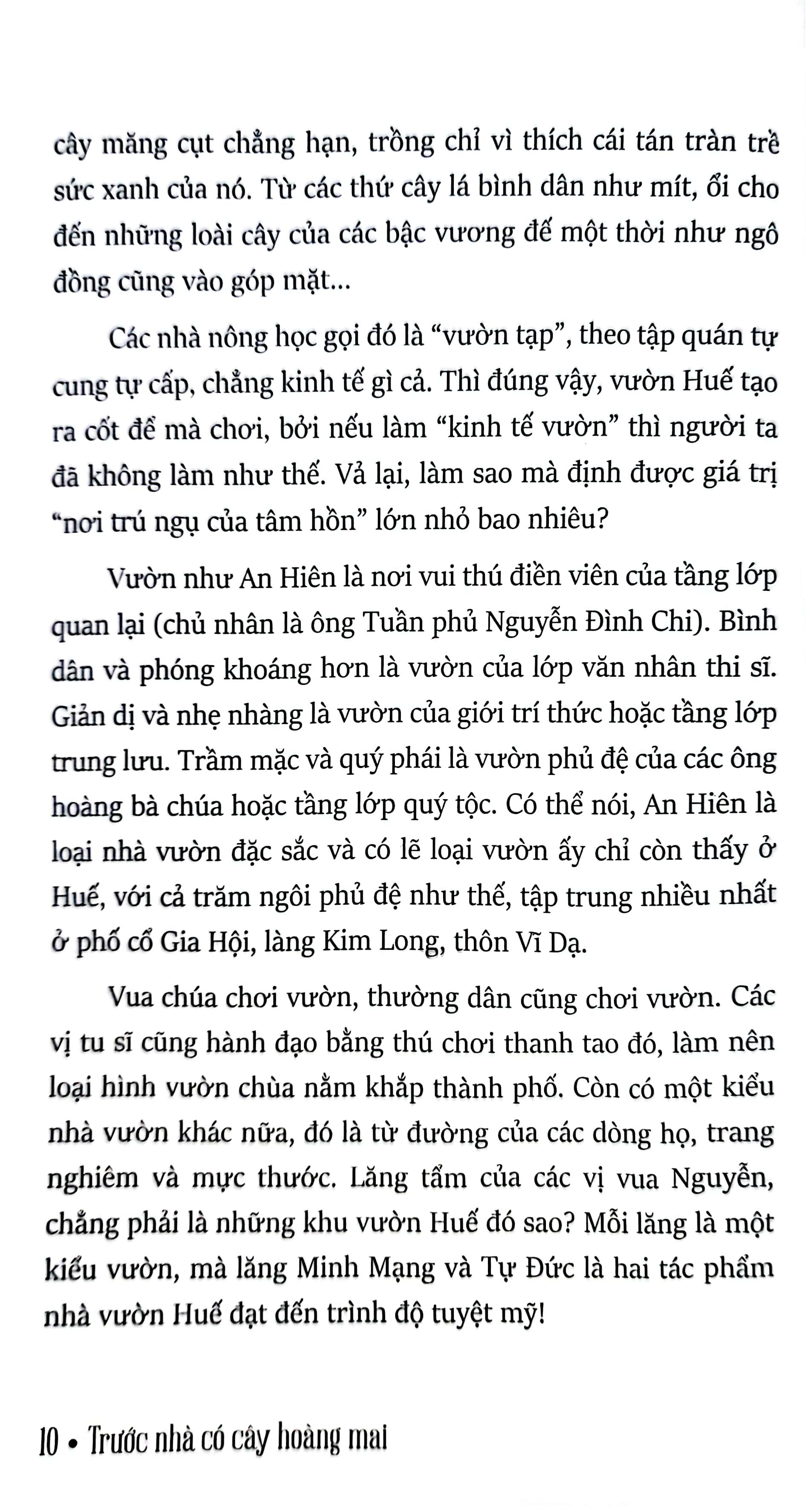 Nhà văn Vĩnh Quyền nói: “Trước nhà có cây hoàng mai của Minh Tự mang dấu ấn một thời sống bên ngoài Huế và cách nhìn - nghĩ của nghề báo, làm nên sự khác biệt với những tác giả viết về Huế – khúc ruột của m.ình – bằng tinh thần cực đoan đáng yêu kiểu ‘không nơi nào có được’ hoặc ‘chẳng thể nào đổi khác’.”