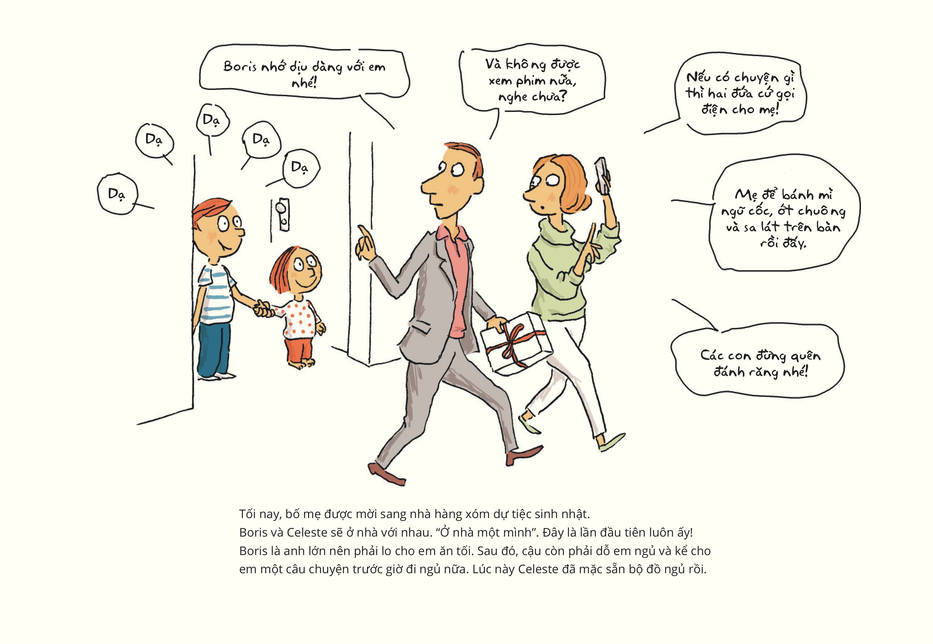 Vì bố mẹ đi vắng nên tối nay cô bé Celeste và anh trai Boris phải ở nhà một mình.