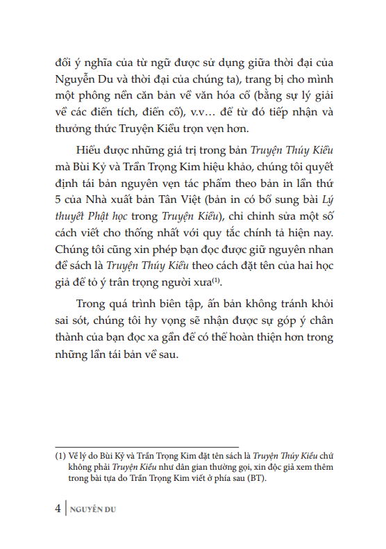 Nhóm hiệu khảo Bùi Kỷ & Trần Trọng Kim (in và đối chiếu các bản in lần 5, 7, 8, trước 1975) để hiệu chính là cho gần được như nguyên văn, lại hết sức tìm tòi đủ các điển tích mà giải thích cho rõ ràng, để ai xem cũng hiểu, không phải ngờ điều gì nữa.