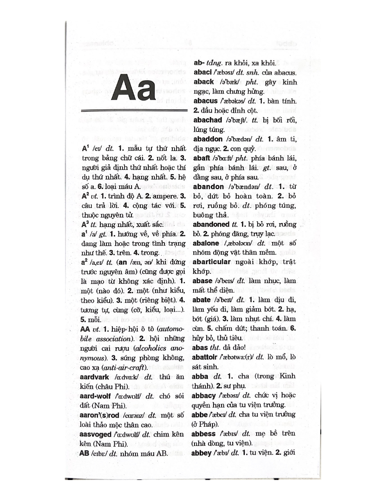Nhằm đáp ứng nhu cầu học tiếng anh đa dạng của độc giả , chúng tôi đã biên soạn bộ từ điển Anh - Việt để phục vụ cho người học tiếng anh thuộc mọi