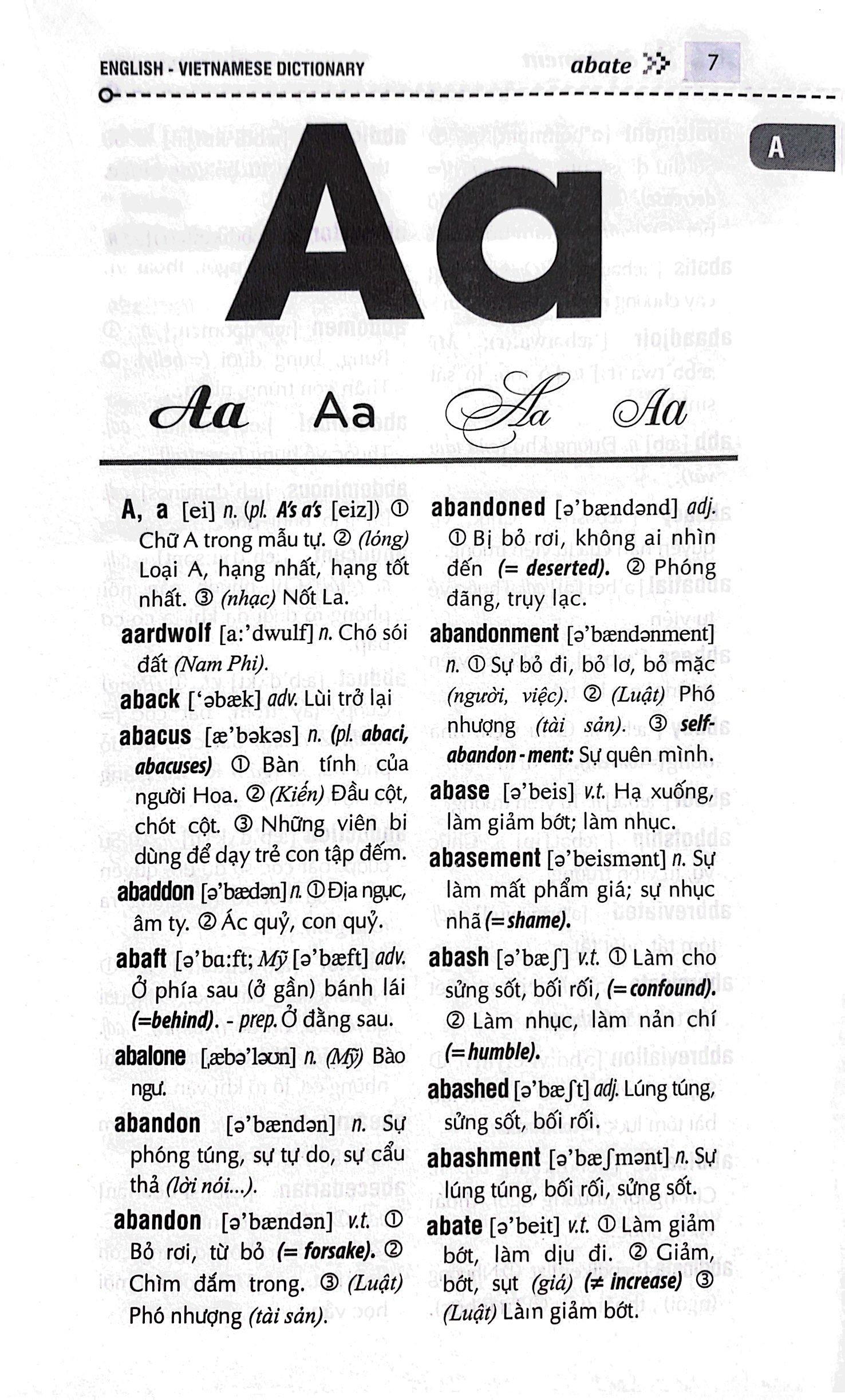 Nhằm đáp ứng nhu cầu học tiếng anh đa dạng của độc giả , chúng tôi đã biên soạn bộ từ điển Anh - Việt để phục vụ cho người học tiếng anh thuộc mọi