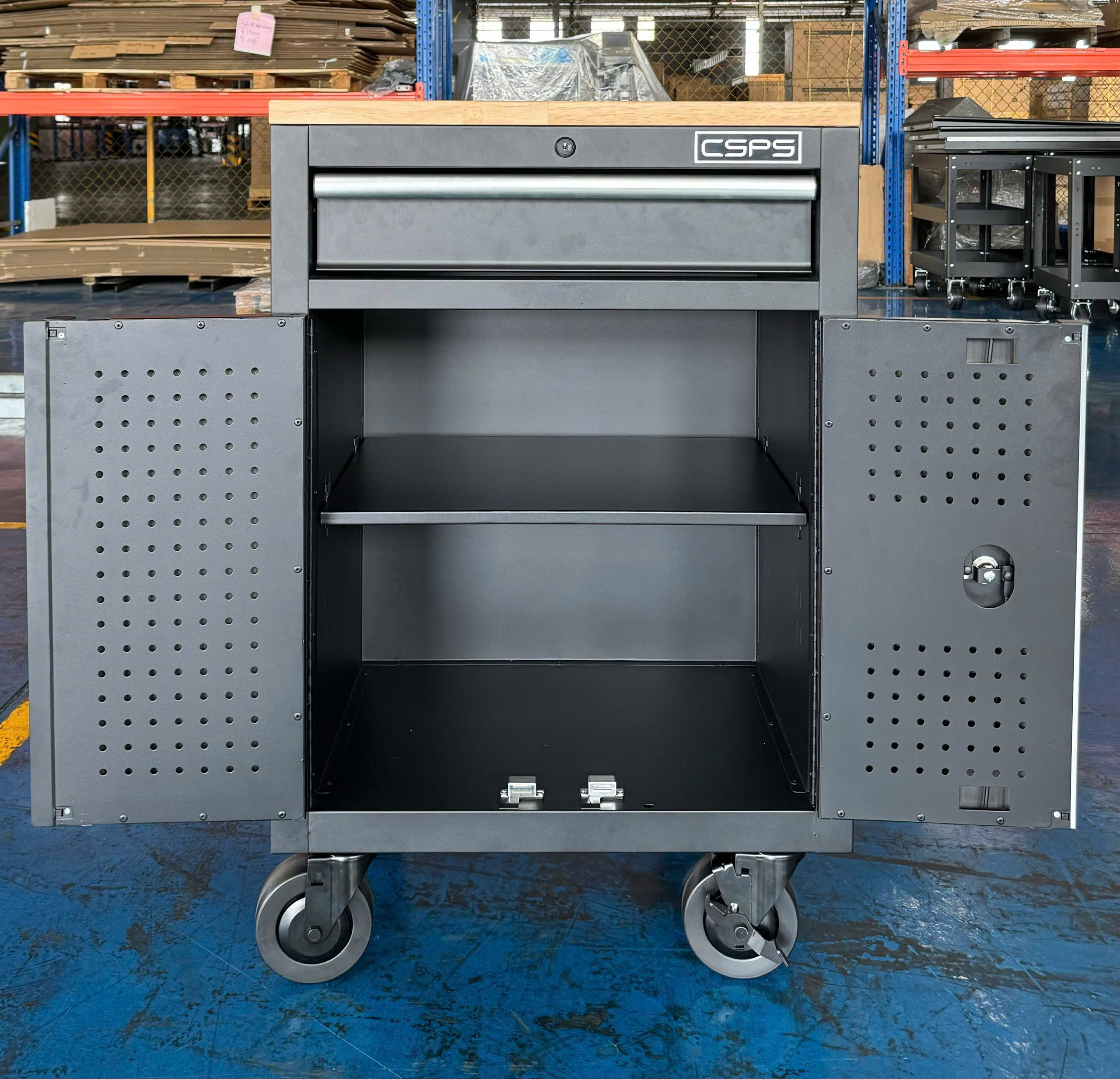 ✨Tủ dụng cụ CSPS 61cm - 01 hộc kéo màu đen bánh xe ván gỗ (tay cầm trắng)