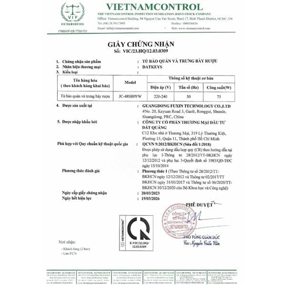 Tủ làm mát rượu Datkeys Model JC-48SBPFW Tủ làm mát rượu Datkeys Model JC-48SBPFW có thiết kế hiện đại, phù hợp cho việc trưng bày bộ sưu tập rượu vang ở các nhà hàng, khách sạn