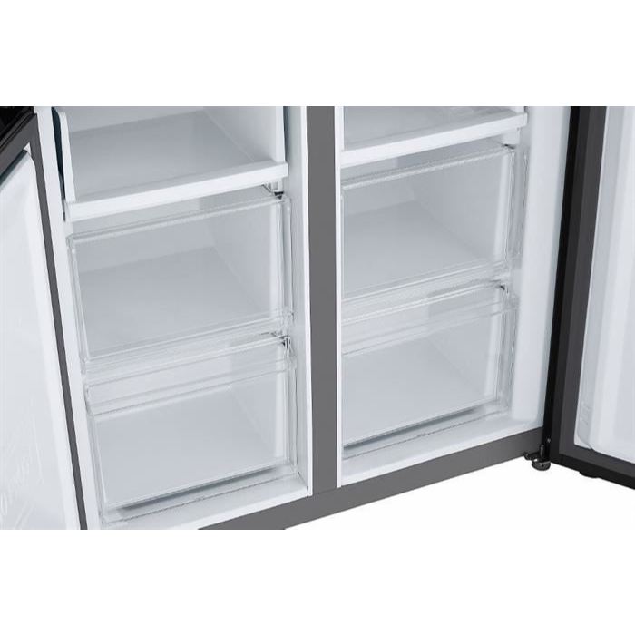 Đặc điểm nổi bật - Tủ lạnh Side by Side 641 lít thích hợp cho gia đình trên 5 thành viên. - Ngăn lấy nước và đá ngoài tiện lợi, tránh mở cửa nhiều lần thất thoát hơi lạnh. - Công nghệ làm lạnh LINEARCooling duy trì nhiệt độ ổn định. - Luồng khí lạnh đa chiều Multi Air Flow đem lại hiệu suất làm lạnh nhanh, đều hơn. - Bộ lọc than hoạt tính khử mùi hiệu quả, giúp không khí trong tủ luôn sạch sẽ. Tổng quan - Kiểu tủ:Tủ lớn - Side by Side - 2 cánh - Dung tích sử dụng:641 lít - Trên 5 người - Dung tích tổng:677 lít - Dung tích ngăn đá:221 lít - Dung tích ngăn lạnh:420 lít - Chất liệu cửa tủ lạnh:Kim loại - Chất liệu khay ngăn lạnh:Kính cường lực - Chất liệu ống dẫn gas, dàn lạnh:Ống dẫn gas bằng Nhôm - Lá tản nhiệt bằng Nhôm - Năm ra mắt:2024 - Sản xuất tại:Trung Quốc Mức tiêu thụ điện năng - Công suất tiêu thụ công bố theo TCVN:624 kWh/năm