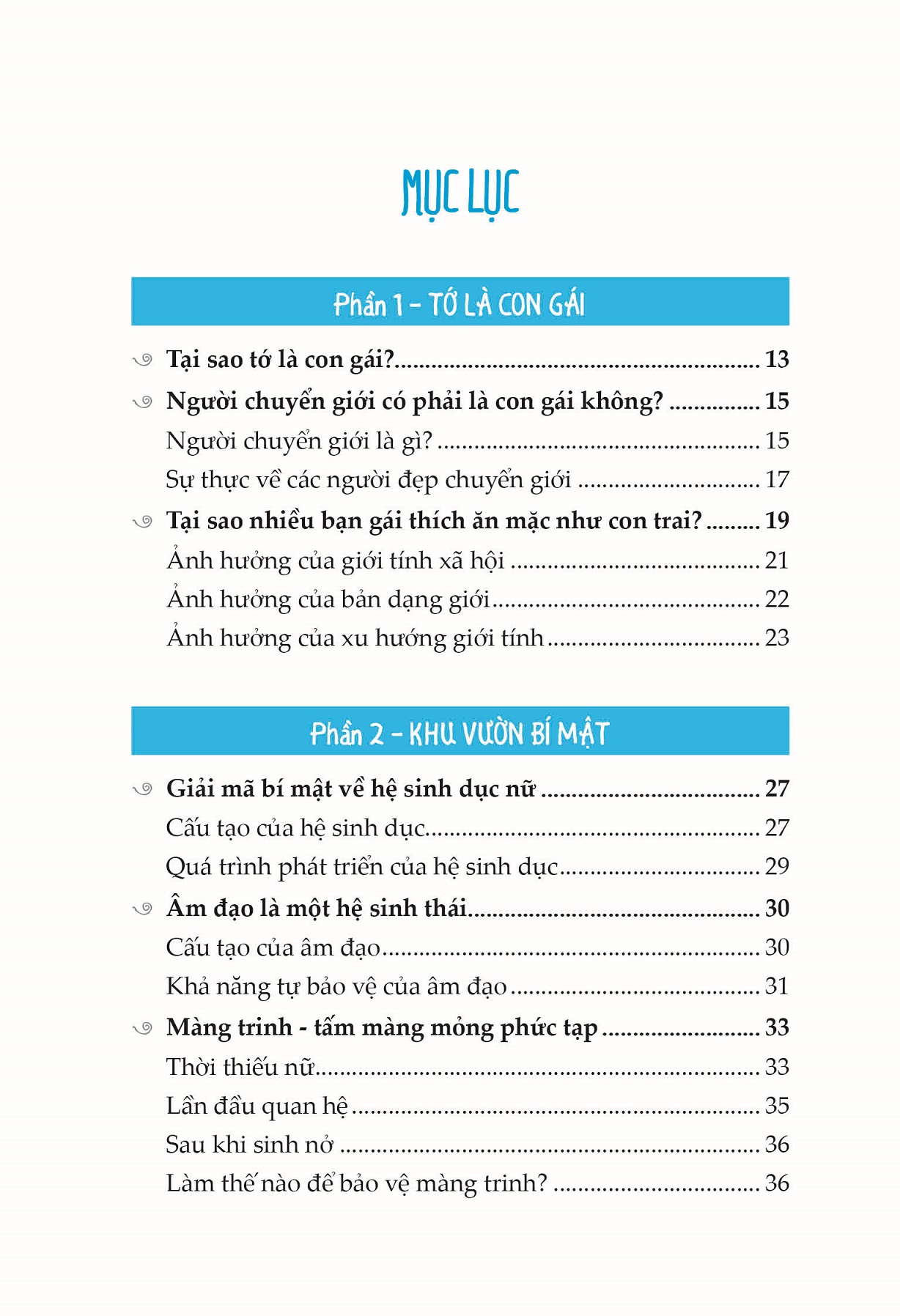 Cuốn sách là cuốn cẩm nang bổ ích giúp bạn gái hiểu hơn về chính mình, biết cách bảo vệ và trân trọng bản thân, để trưởng thành an toàn và khoẻ mạnh.