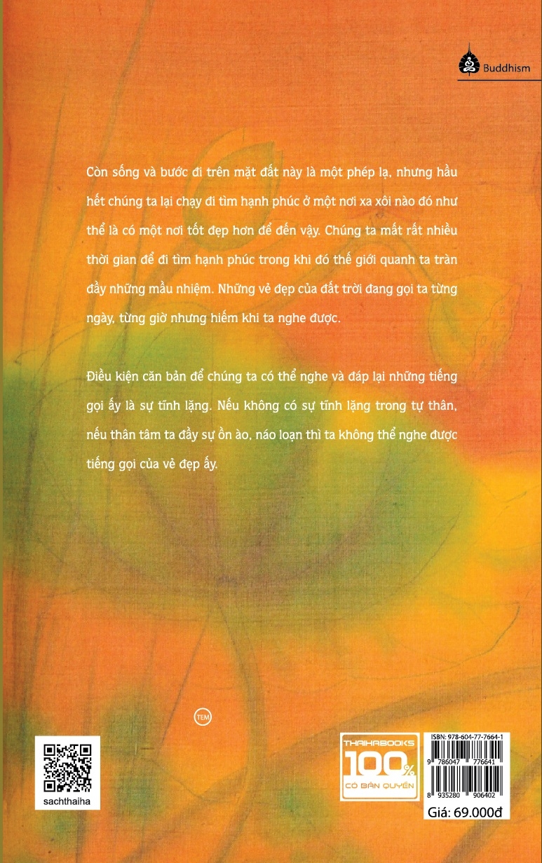 Còn sống và bước đi trên mặt đất này là một phép lạ, nhưng hầu hết chúng ta lại chạy đi tìm hạnh phúc ở một nơi xa xôi nào đó như thể là có một nơi tốt đẹp hơn để đến vậy. Chúng ta mất rất nhiều thời gian để đi tìm hạnh phúc trong khi đó thế giới quanh ta tràn đầy những mầu nhiệm. Những vẻ đẹp của đất trời đang gọi ta từng ngày, từng giờ nhưng hiếm khi ta nghe được. Điều kiện căn bản để chúng ta có thể nghe và đáp lại những tiếng gọi ấy là sự Tĩnh Lặng. Nếu không có sự tĩnh lặng trong tự thân, nếu thân tâm ta đầy sự ồn ào, náo loạn thì ta không thể nghe được tiếng gọi của vẻ đẹp ấy. Có một đài radio đang hoạt động trong đầu ta, đó là đài NST (Non Stop Thinking) - đài suy nghĩ liên tục không ngừng. Tâm ta đầy tiếng ồn vì vậy ta không thể nghe được tiếng gọi của sự sống, tiếng gọi của tình thương. Trái tim ta đang gọi ta mà ta không nghe thấy. Ta không có thời gian để lắng nghe trái tim mình.
