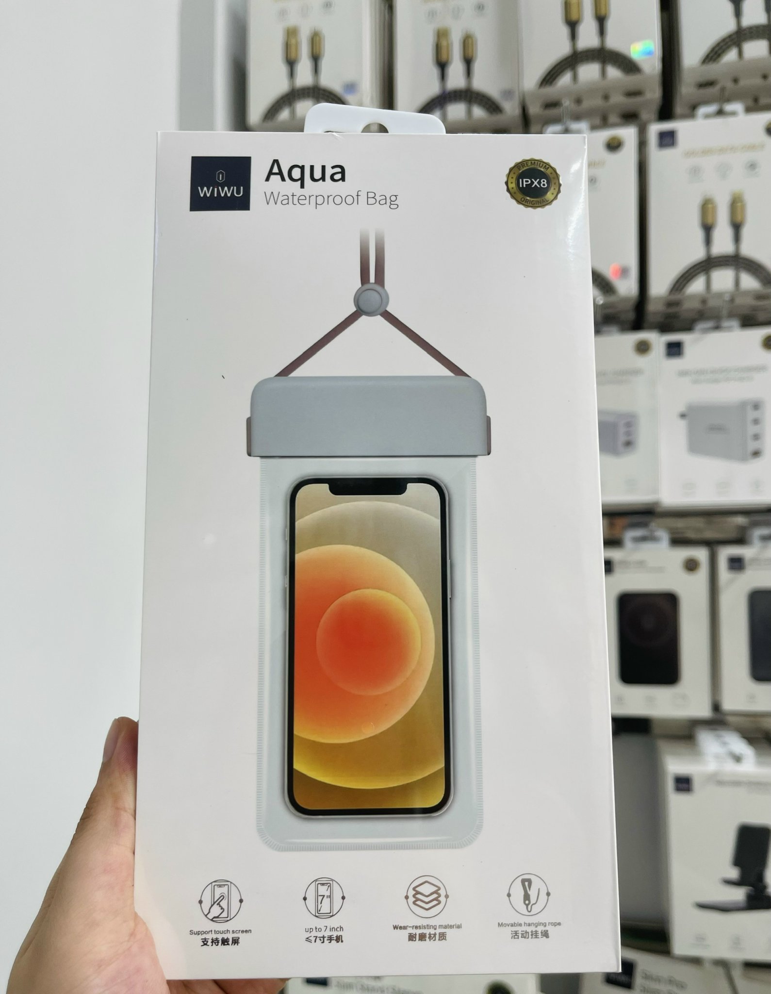 Túi chống nước Wiwu Aqua Waterproof BagThương hiệu: Mô tả sản phẩm- Chất liệu: ABS + TPU + Dây cotton- Trọng lượng: 56g- Chiều dài dây: 900mm- Tương thích với thoại di động màn hìn...