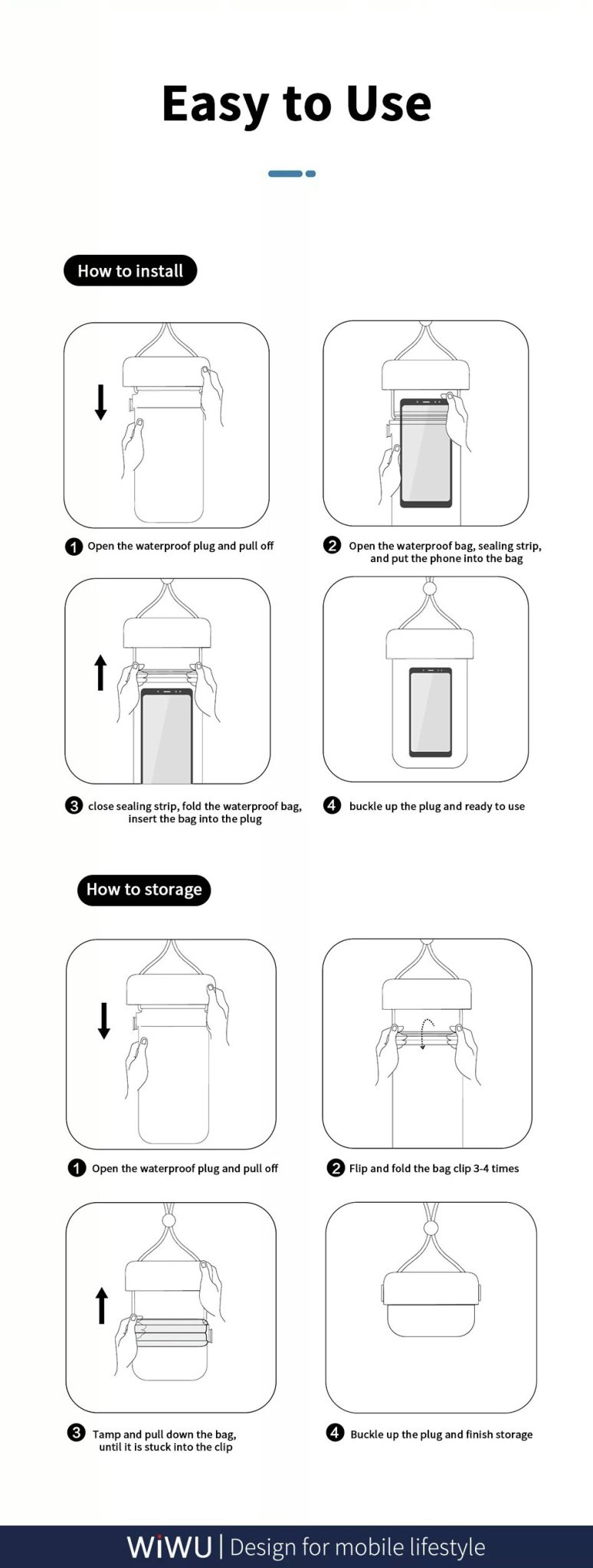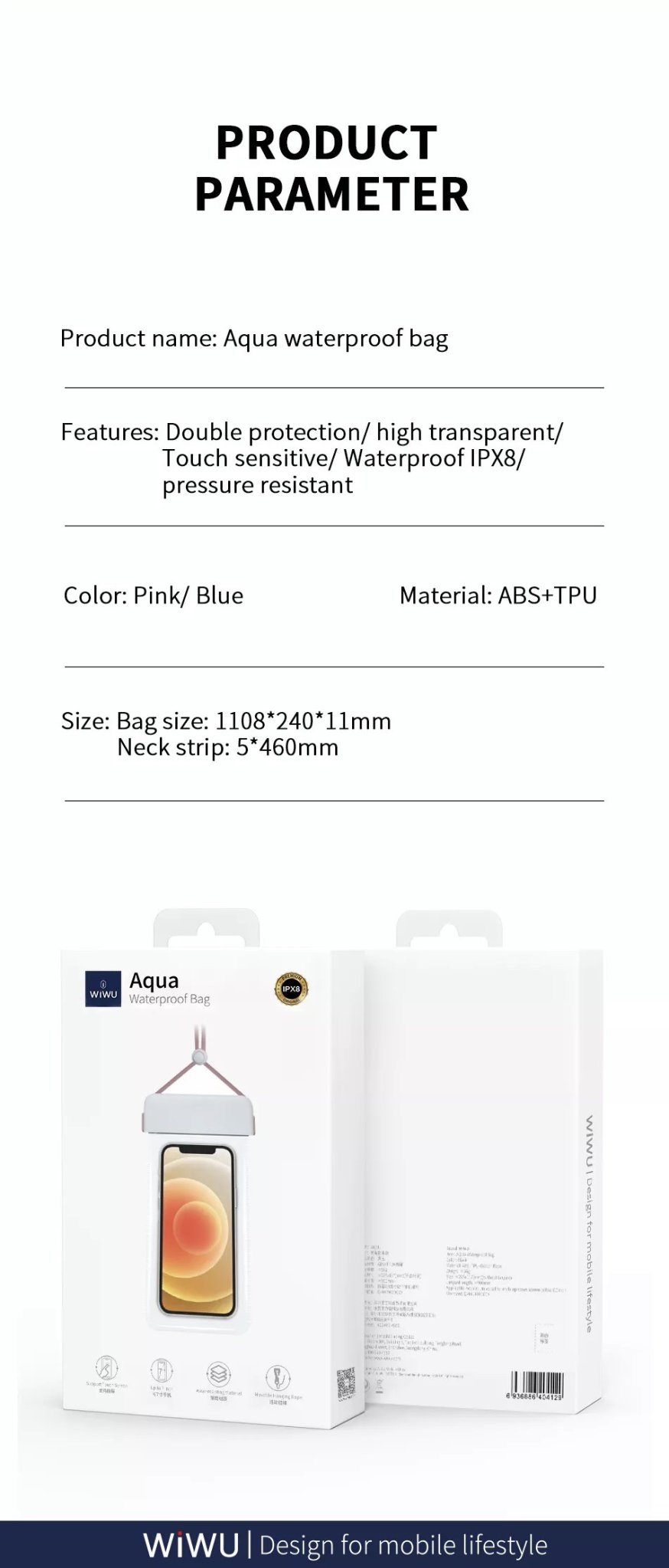 ✨Túi Chống Nước Wiwu Aqua Waterproof Bag Dành Cho Điện Thoại Di Động Trong Suốt Cao, Cảm Ứng Nhạy, Chống Nước - Hàng Chính Hãng