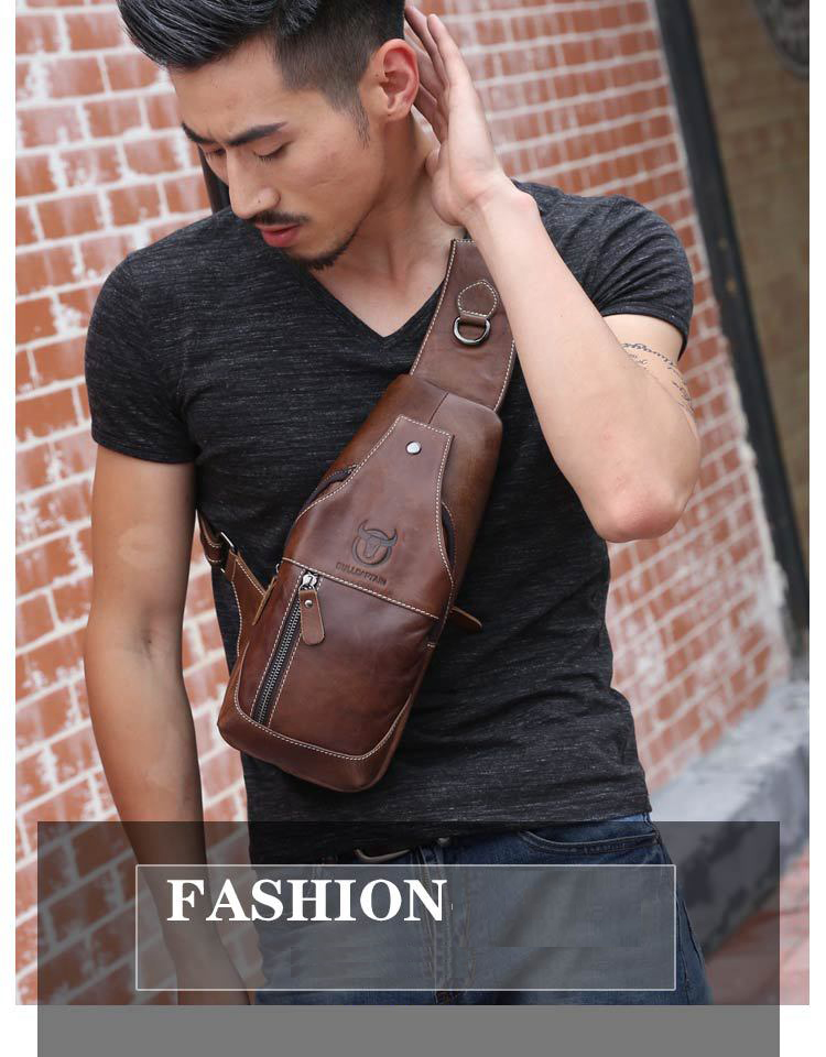 Túi đeo ngực, đeo chéo nam da bò cao cấp BHM9104 được thiết kế khá đơn giản kết hợp với màu đen trơn mang lại sự giản dị cũng không kém phần trẻ trung, năng