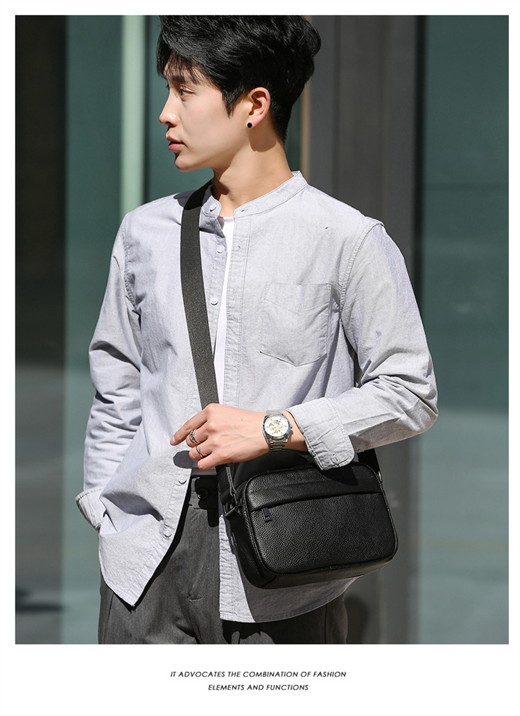 Túi đeo chéo nam ngang nhỏ gọn cao cấp BHM2030 Khá tiện dụng với thiết kế hình hộp chữ nhật gọn gàng cùng màu đen đơn giản dễ dàng kết hợp mọi phong cách thời