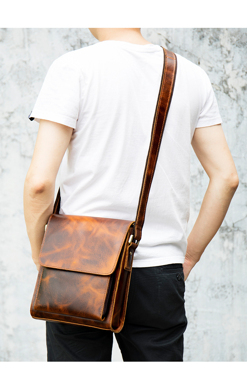 [Da thật] Túi đeo chéo nam da bò sáp TD147 (Nâu sáp) - 100% da thật, BH 3 năm