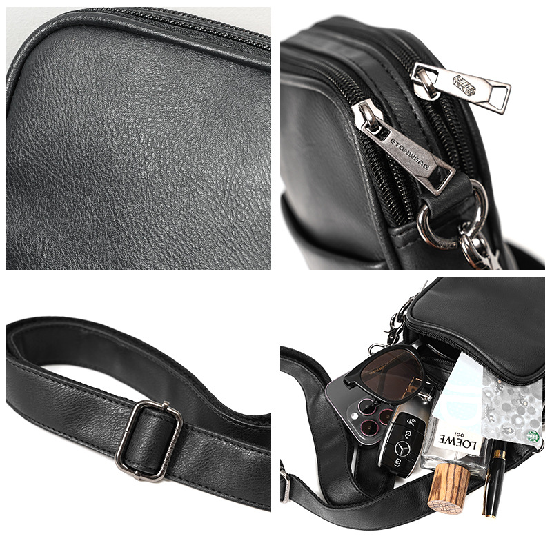 Túi đeo ngực, đeo chéo nam da bò cao cấp BHM9104 được thiết kế khá đơn giản kết hợp với màu đen trơn mang lại sự giản dị cũng không kém phần trẻ trung, năng