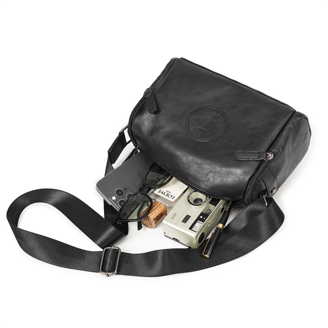 Túi đeo ngực, đeo chéo nam da bò cao cấp BHM9104 được thiết kế khá đơn giản kết hợp với màu đen trơn mang lại sự giản dị cũng không kém phần trẻ trung, năng