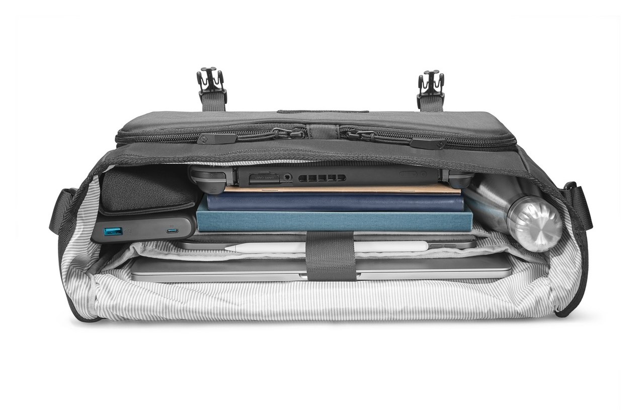 Khe để máy tính bảng có kích thước vừa với iPad 11 inch. Ngăn chính lớn có thể để sách, quần áo, ví và nhiều vật dụng khác.