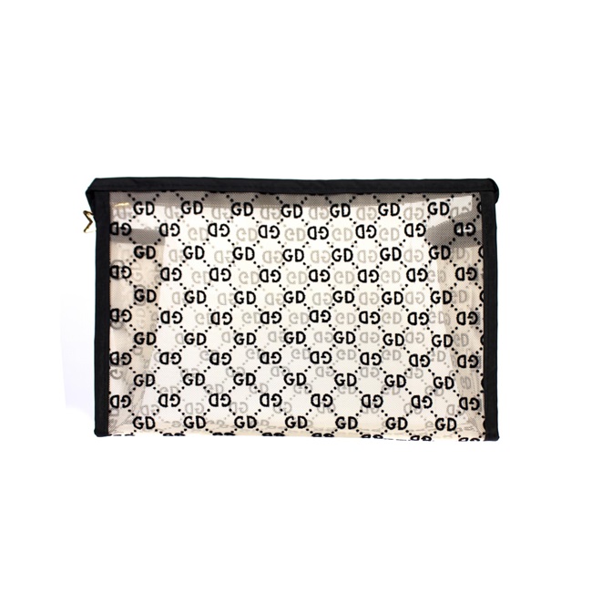 Kích thước:  22x6x13 cm Chất liệu: Nhựa nylon, khoá kéo kim loại Màu sắc: Màu kem họa tiết đen Số ngăn: 1 ngăn lớn Mô tả sản phẩm: Túi đựng mỹ phẩm cao cấp họa tiết hiện đại Care4u