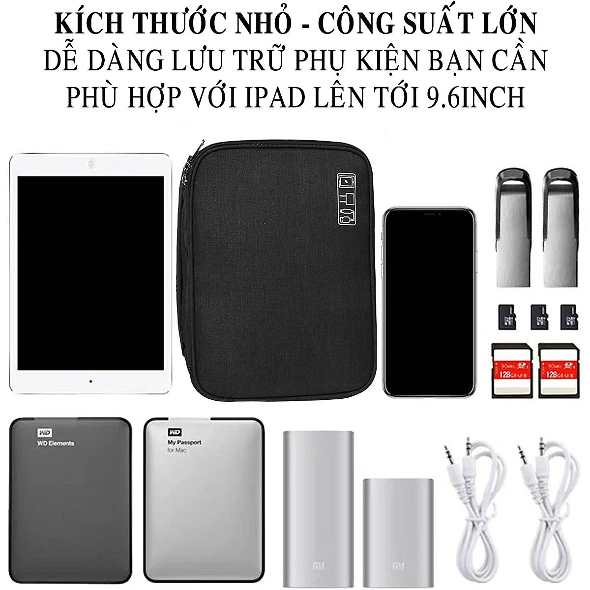 Túi đựng phụ kiện điện thoại 2 ngăn lớn cải tiến nhiều ngăn Túi đựng bảo vệ phụ kiện điện thoại máy tính bảng cao cấp chống nướ chống sốcHàng chính hãng D Danido ***THÔNG TIN SẢN PHẨM***Sản P...