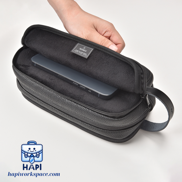 Chất liệu bền bỉ làm từ da PU không chỉ chống nước, bảo vệ thiết bị tốt mà còn tạo vẻ ngoài sang trọng Phù hợp để lưu trữ và tổ chức các phụ kiện