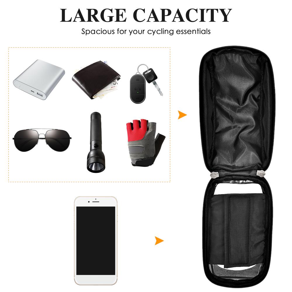 The Bike Handlebar bag is designed with a folding touch screen which allows for a certain degree reading, easy access to your phone's touchscreen functionality without taking them out, suitable for cellphone up to 7