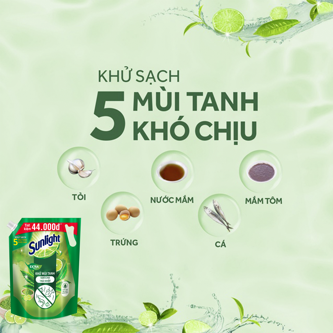 ✨Túi Nước Rửa Chén Sunlight Bio-care Thiên Nhiên 100% Gốc Thực Vật Hương Matcha Trà Nhật 3.3KG