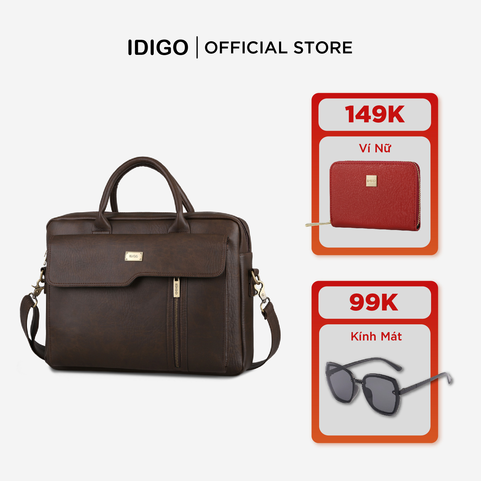 Cặp da nam nữ đựng laptop 15.6 inch, túi xách công sở ngăn trước túi hộp IDIGO MB2 - 702