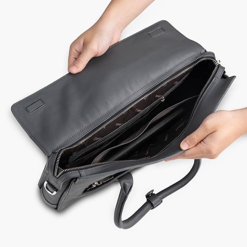 THÔNG TIN SẢN PHẨM Xuất Xứ: Gence Việt Nam - Da thật, Giá trị thật Mã Hàng: CGL10 Kích Thước: 38cm(Dài) x 28cm (Cao) x 5.5cm (Dày) Chất Liệu: Da bò Taiga Màu Sắc: Ghi