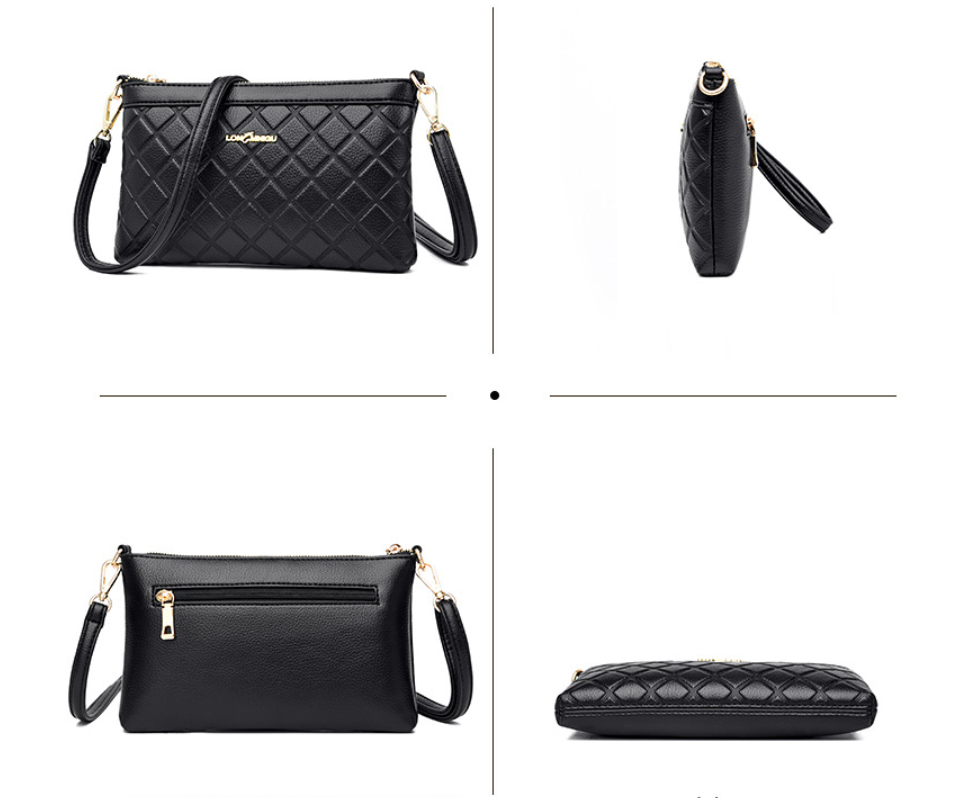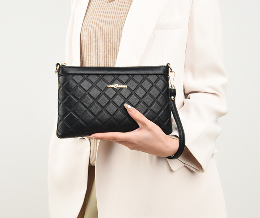 Ví da nữ cầm tay chần bông hình thoi Lata VN73 được thiết kế kiểu dáng lạ mắt, nhưng không kém phần thời trang, sang trọng. Chiếc ví được viền chỉ chắc chắn, bên trong