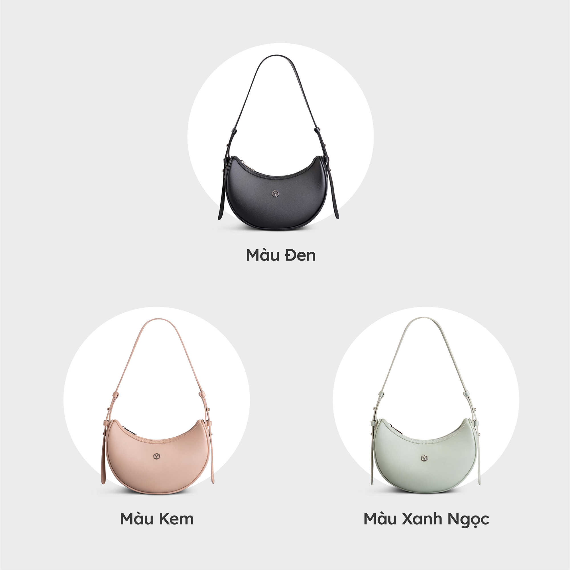 THIẾT KẾ NỔI BẬT - DÁNG CHUẨN FORM - Thiết kế túi hình bán nguyệt nữ tính, hiện đại, cùng chất liệu da chống trầy, chống bám nước. - Khóa gài trang trí cách