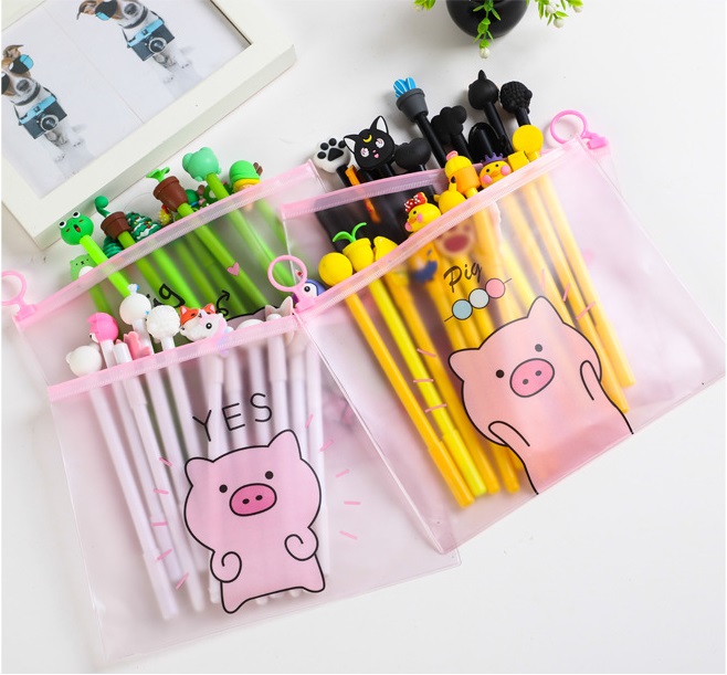 Bóp viết đựng dụng cụ học tập, túi đựng mỹ phẩm trong suốt hình heo hồng dễ thương