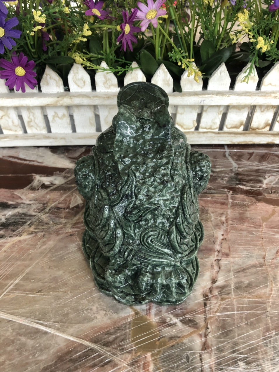 Chất liệu: Đá ngọc Ấn Độ Kích thước: Dài 13 cm x Rộng 10 cm x Cao 11 cm Khối lượng: 1,62 kg Thiềm Thừ được người xưa gọi là Cóc tài lộc, Cóc ba