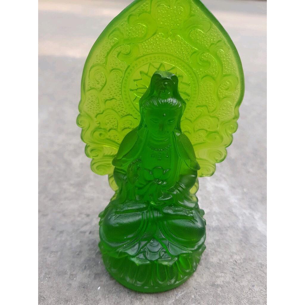 Tượng Phật Bà Quan Âm Mới Đá Lưu Ly Xanh Lá Tươi Đẹp Để Xe Hơi hoặc để bàn cao 12cm đk 7cm đế 5cm Hợp Mệnh Hỏa Mệnh Mộc ạ *** Tượng Phật Bà