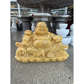 Chất liệu: Đá ngọc Hoàng Long Kích thước: Dài 50 cm x Rộng 20 cm x Cao 34 cm Khối lượng: 40 kg Phật Di Lặc trong Phong thủy Còn gọi là "Phật Cười", Di