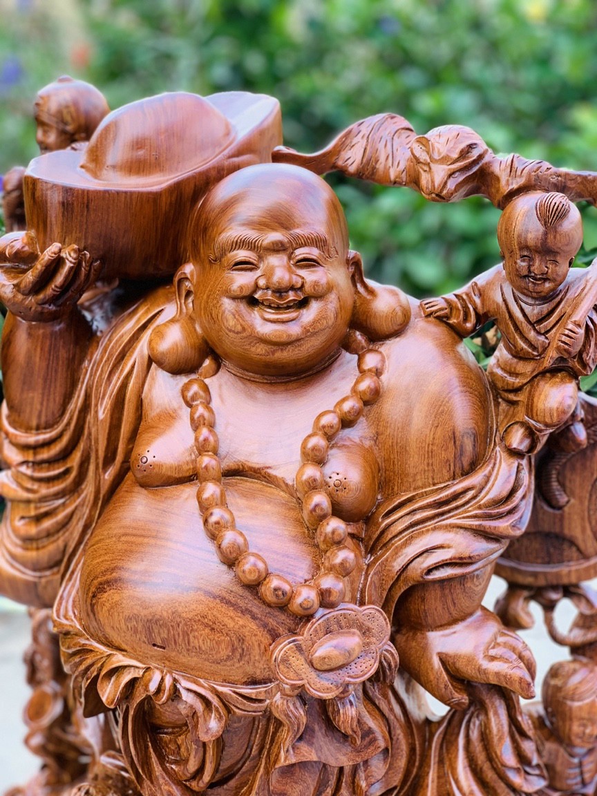 Mua tại Tiktok_Tượng phật di lặc ngũ phúc được làm bằng chất liệu sụn hương ta liền khối tự nhiên 100%