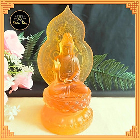 Tượng Phật Quan Âm Đá Lưu Ly Vàng Mới để trong xe hơi hoặc để bàn cao 12cm đk 7cm đế 5cm Mệnh Kim mệnh Thổ mệnh Thủy ạ *** Tượng Phật Quan Âm Đá