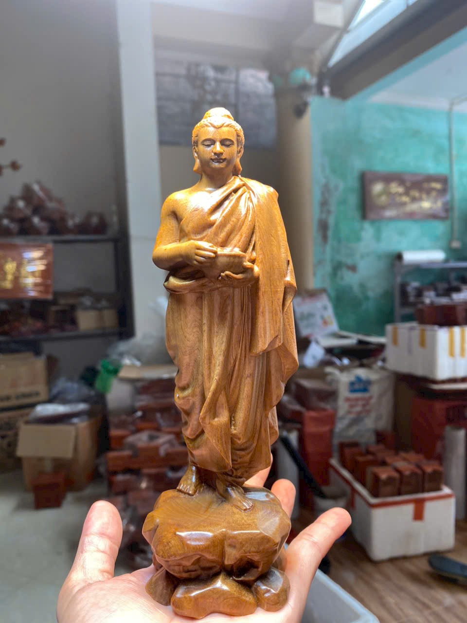 ✨Tượng phật thích ca khất thực bằng gỗ bách xanh thơm nức kt cao 20×7×6cm